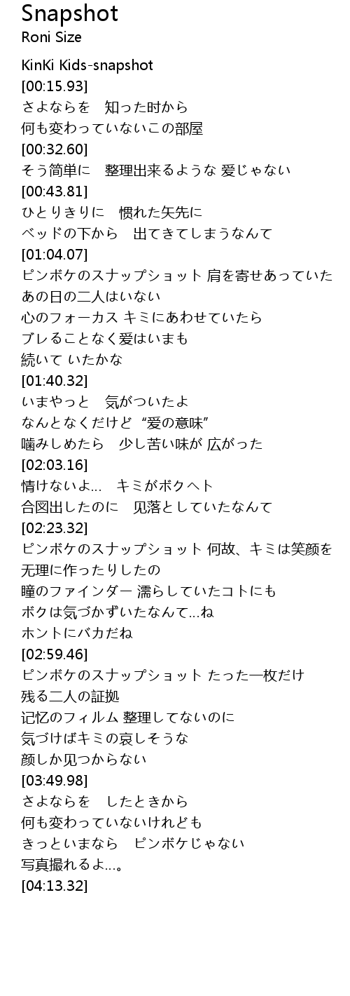 | [03:16.77] | ピンボケのスナップショット たった一枚だけ |