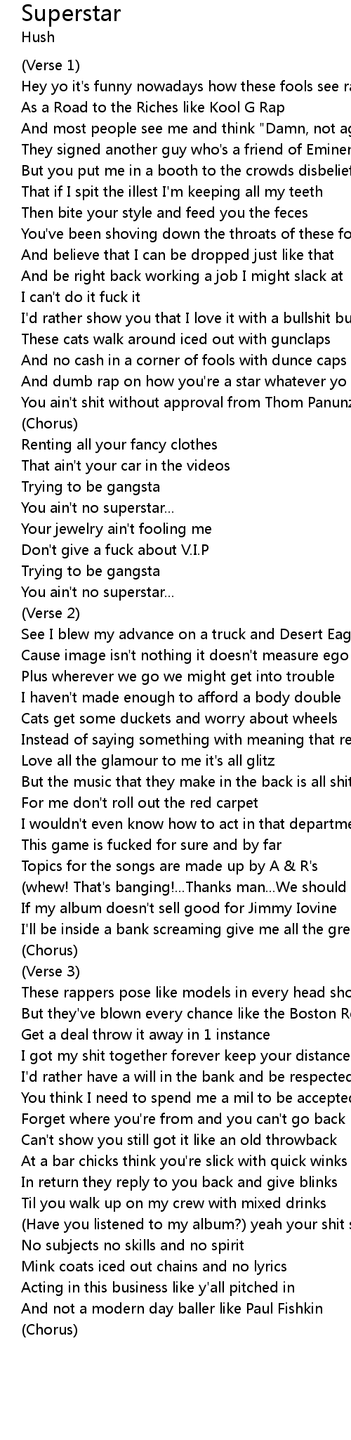 And dumb rap on how you're a star whatever yo |
