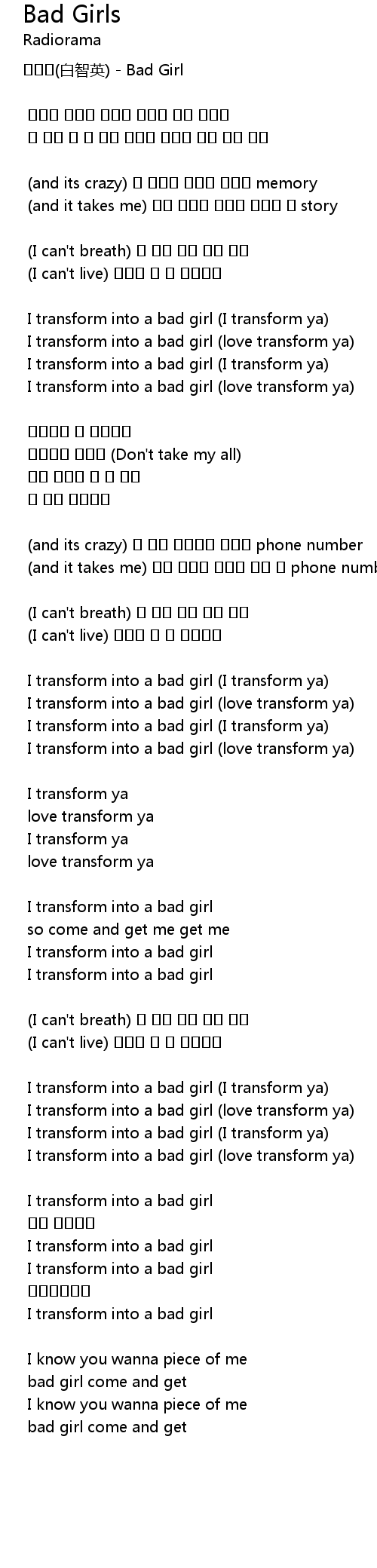 | I transform into a bad girl I transform ya | |