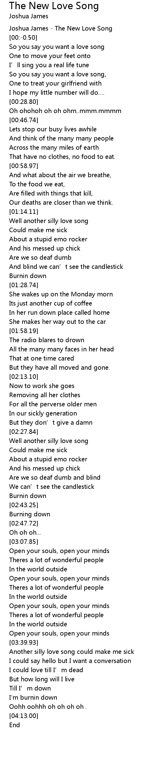 | [00:-2.50] | Joshua James The New Love Song |