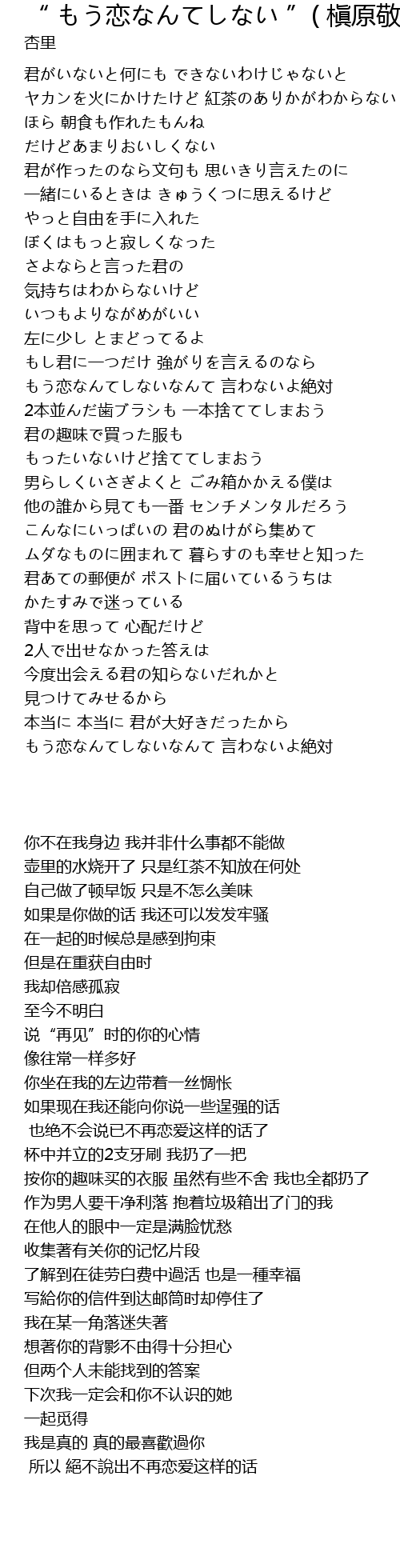 | Song | “ もう恋なんてしない ”( 槇原敬之) |
