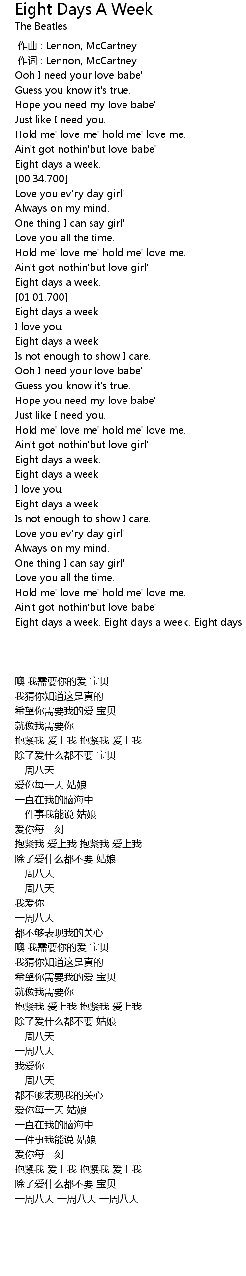 | [01:44.360] | Eight days a week |
