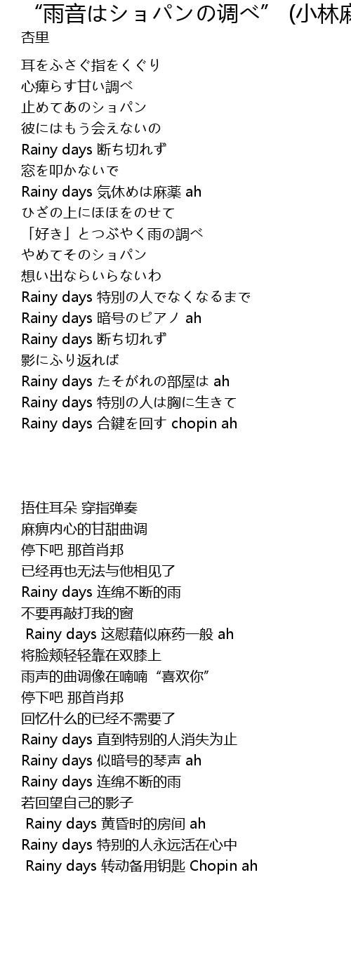 | [03:11.55] | Rainy days hé jiàn huí chopin ah |