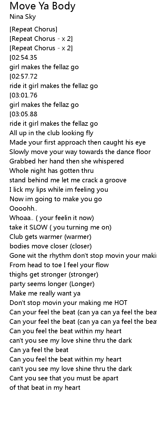 Ooh move ya body girl makes the fellaz go |