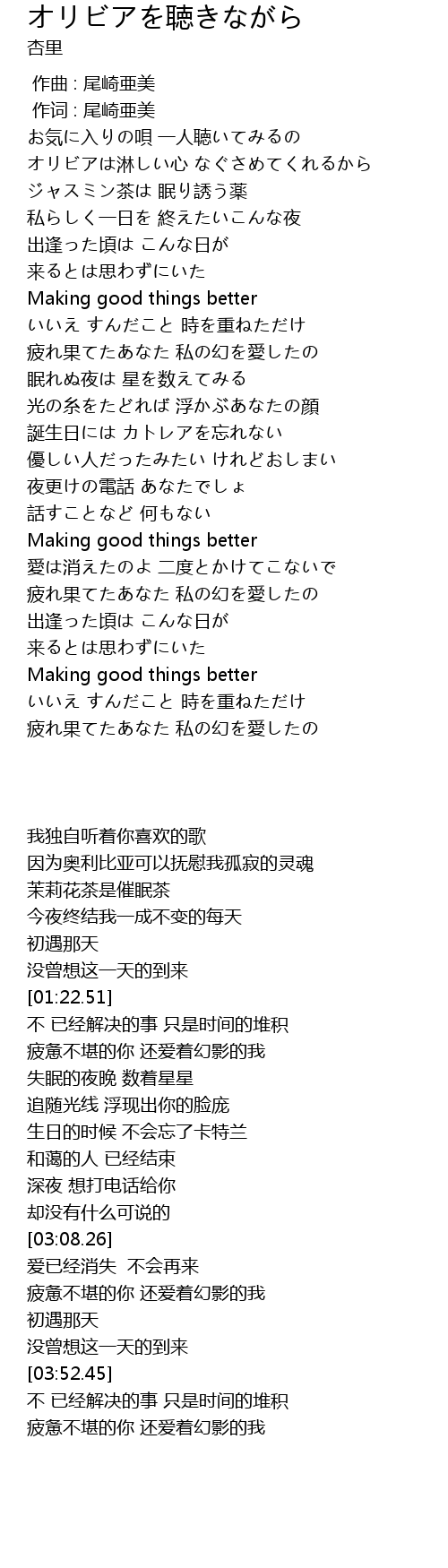 | [00:01.00] | 作词 : 尾崎亜美 |