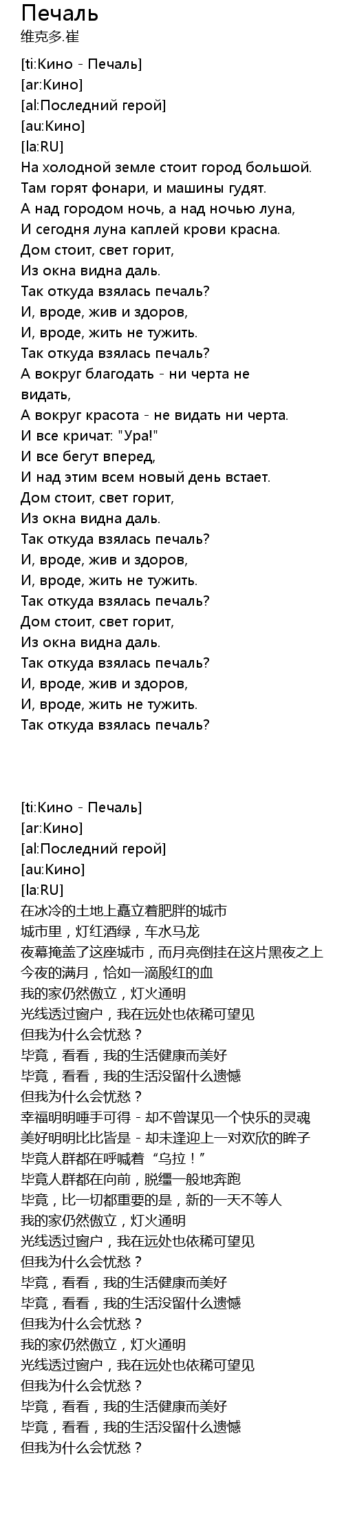 [ti:Кино - Печаль]