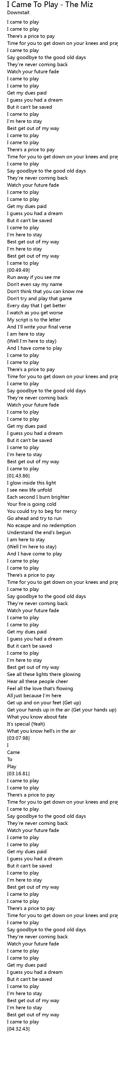 And I have come to play |