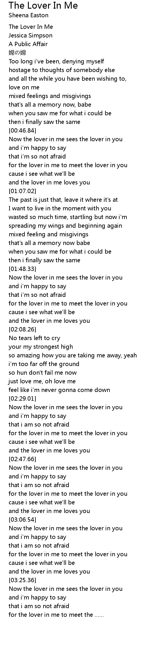 | [00:57.81] | for the lover in me to meet the lover in you |
