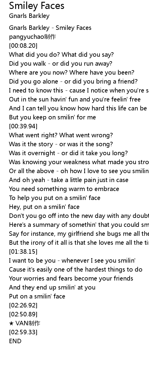 | [00:-0.50] | Gnarls Barkley Smiley Faces |