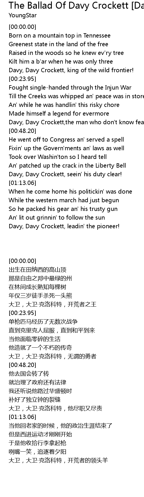 Davy, Davy Crockett,the man who don't know fear! |