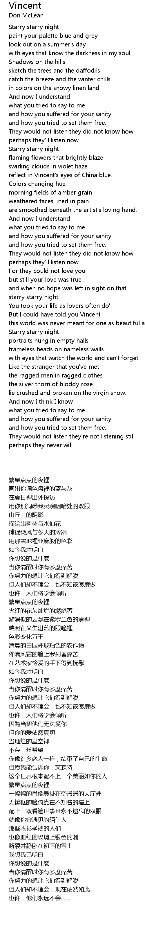 Vincent Lyrics