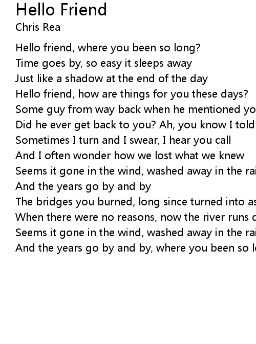 Hello friend, where you been so long? |