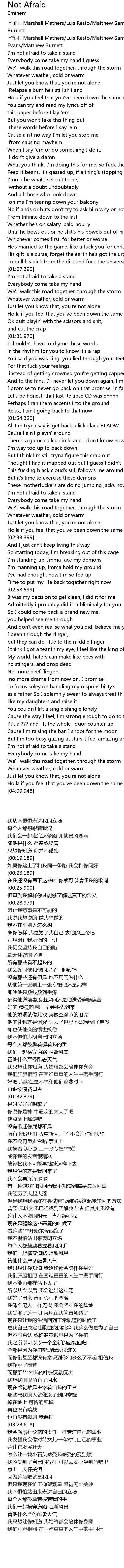 | [00:00.00] | 作曲 : Marshall Mathers/Luis Resto/Matthew Samuels/J. Evans/Matthew Burnett |