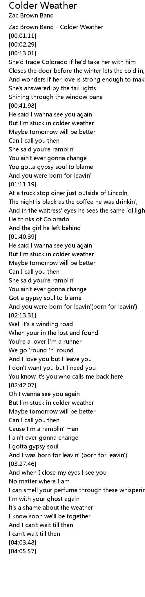 Zac Brown Band - Colder Weather |