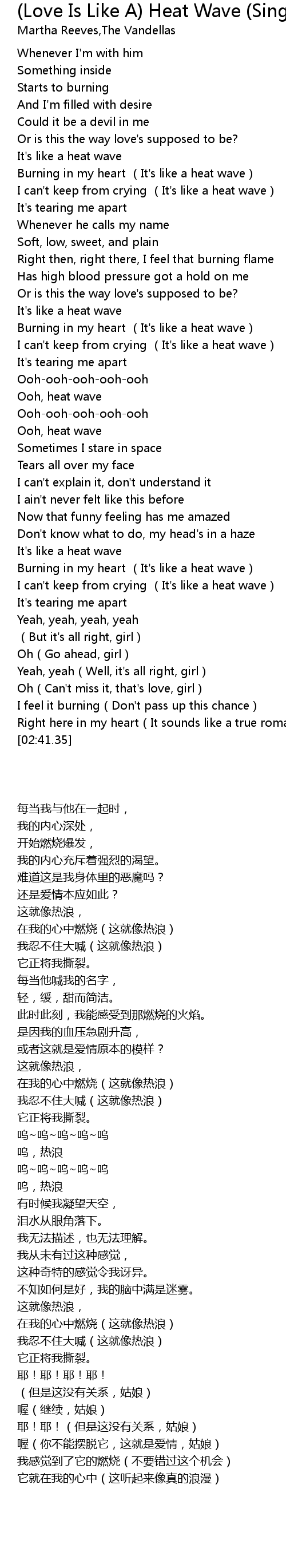 | [02:14.58] | Burning in my heart (It's like a heat wave) |