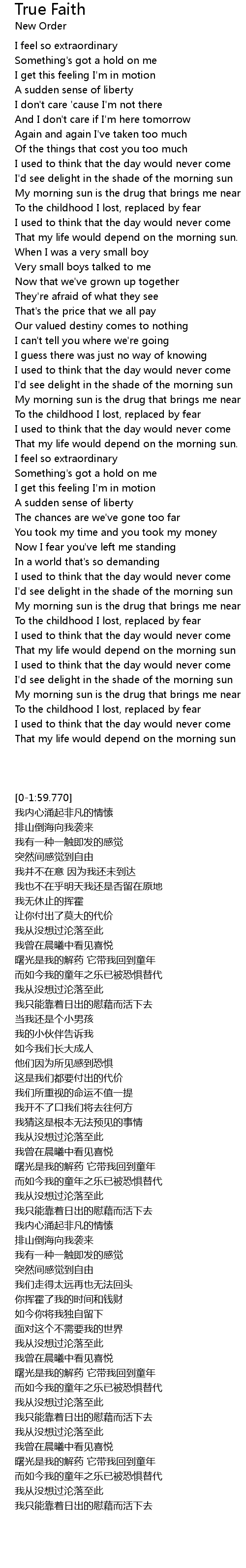 True Faith Lyrics