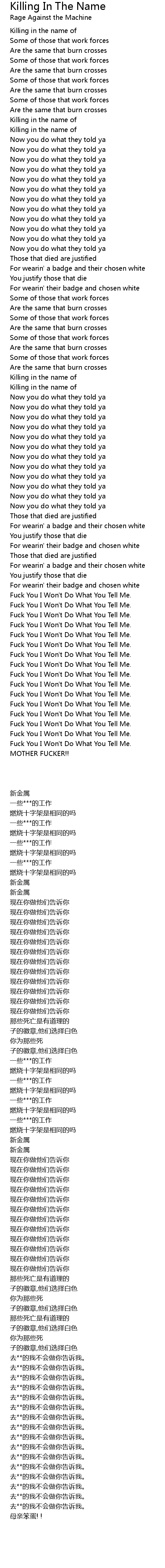 Fuck You I Won't Do What You Tell Me. |