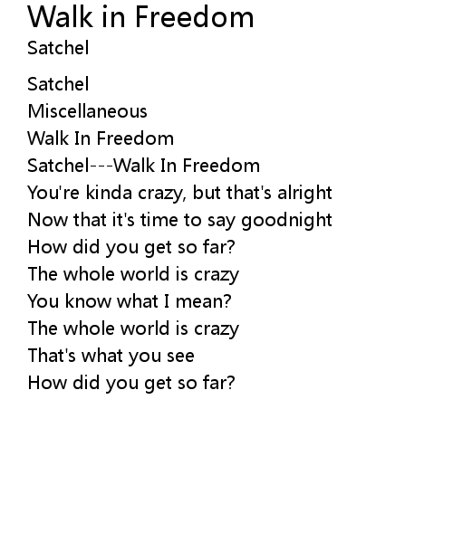 | Satchel---Walk In Freedom | |