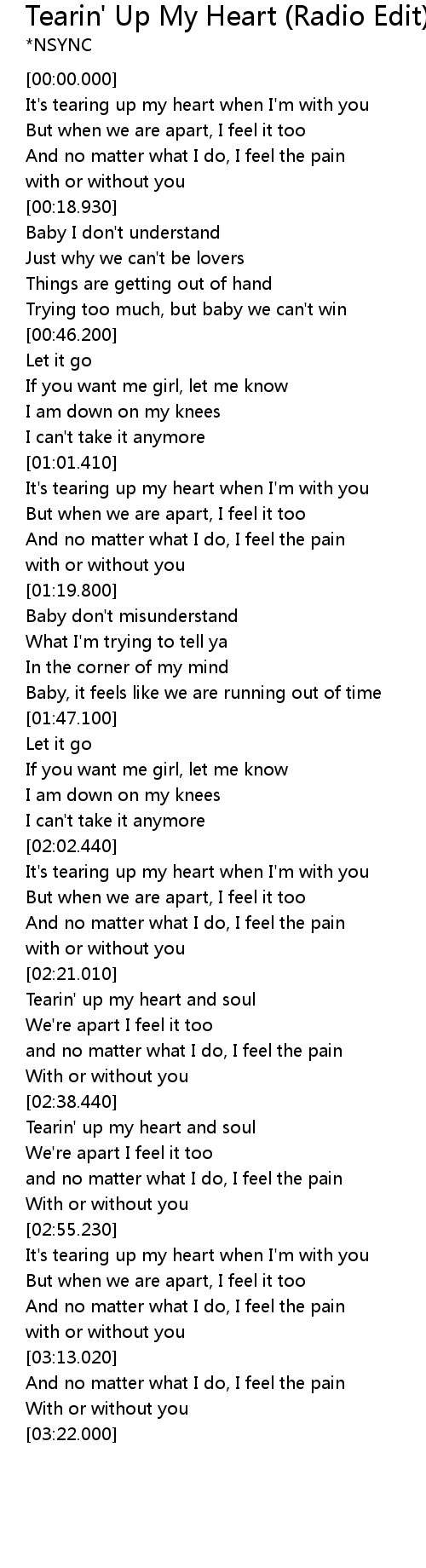 Tearin' Up My Heart (Radio Edit) Lyrics