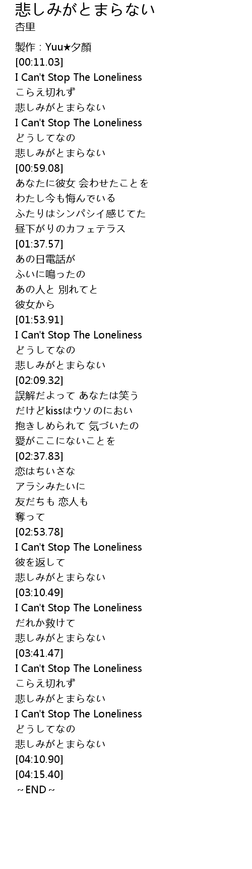 | [03:56.73] | I Can' t Stop The Loneliness |