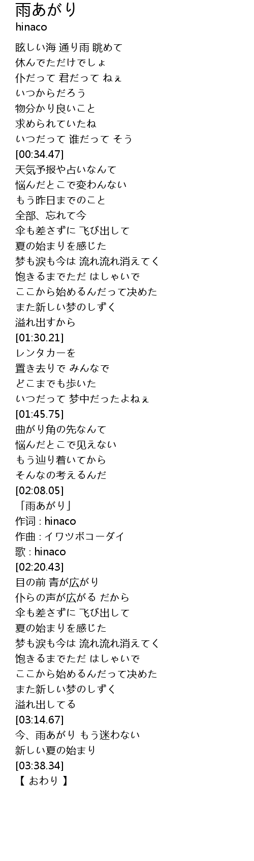 | [02:11.43] | 「雨あがり」 |