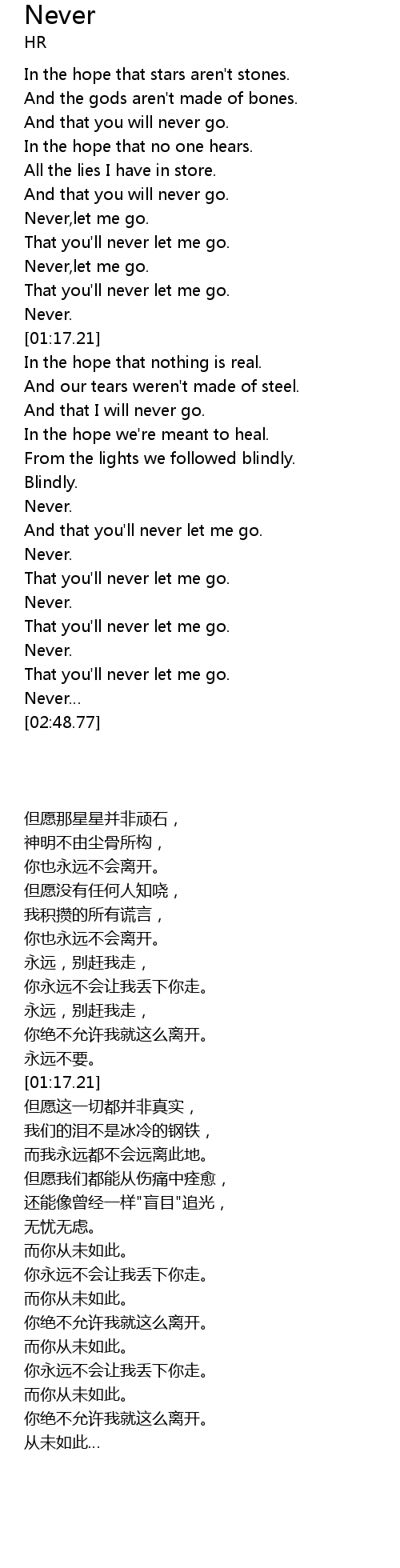 | [00:58.48] | Never,let me go. |