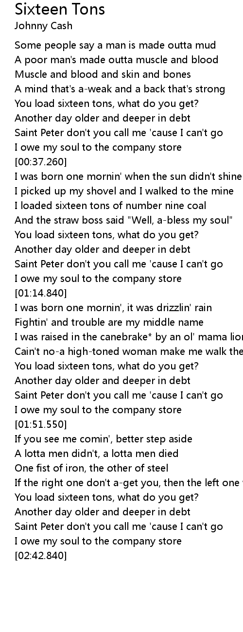 You load sixteen tons, what do you get? |