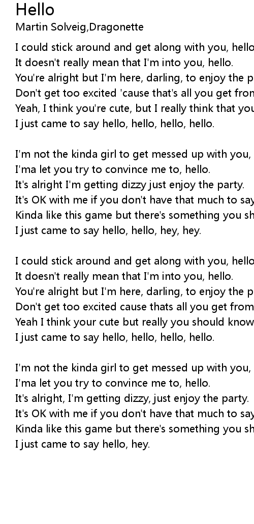 I just came to say hello, hello, hello, hello. |