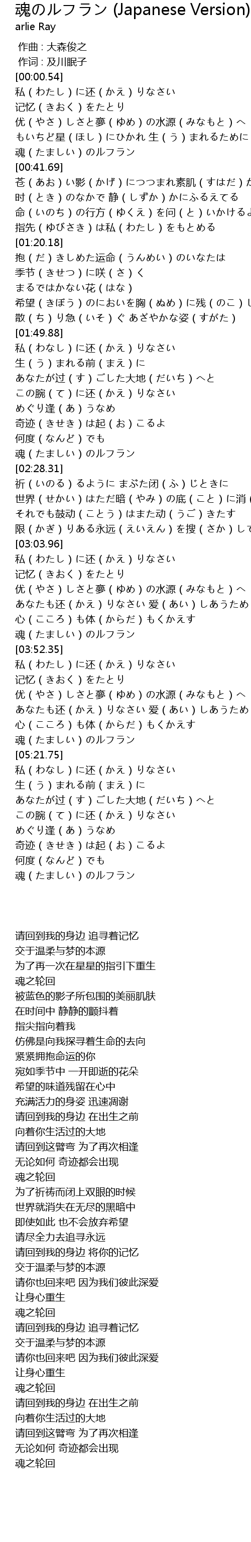 | [05:37.62] | この腕(て)に还(かえ)りなさい めぐり逢(あ)うなめ |