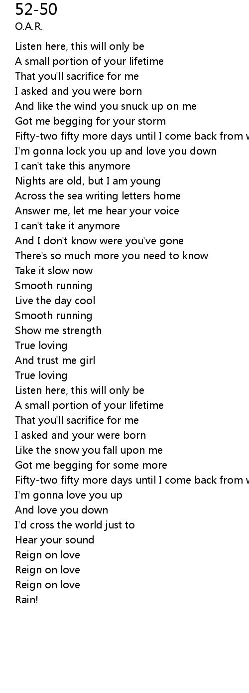 Fifty-two fifty more days until I come back from war |