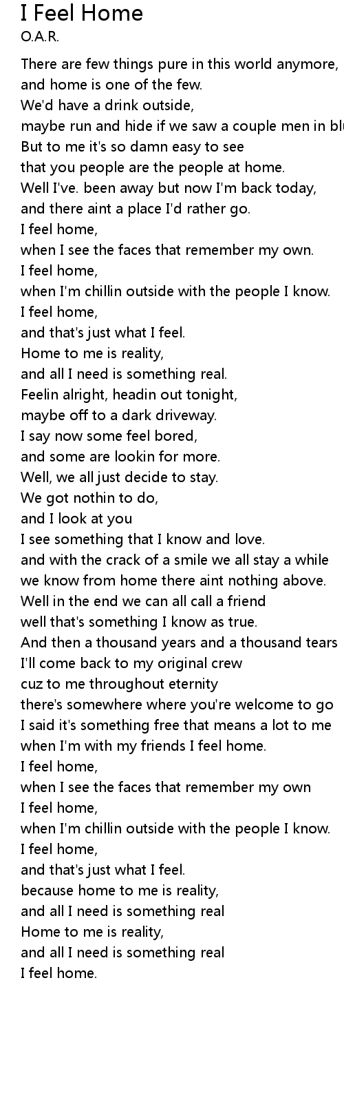 I feel home, |