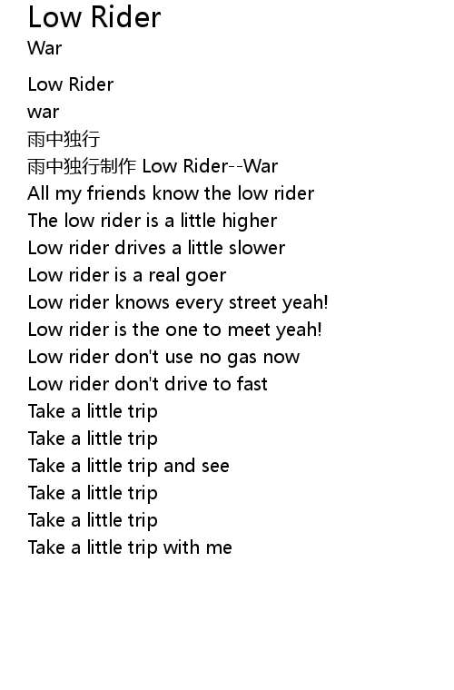 | [00:01.58] | yu zhong du xing zhi zuo Low RiderWar |