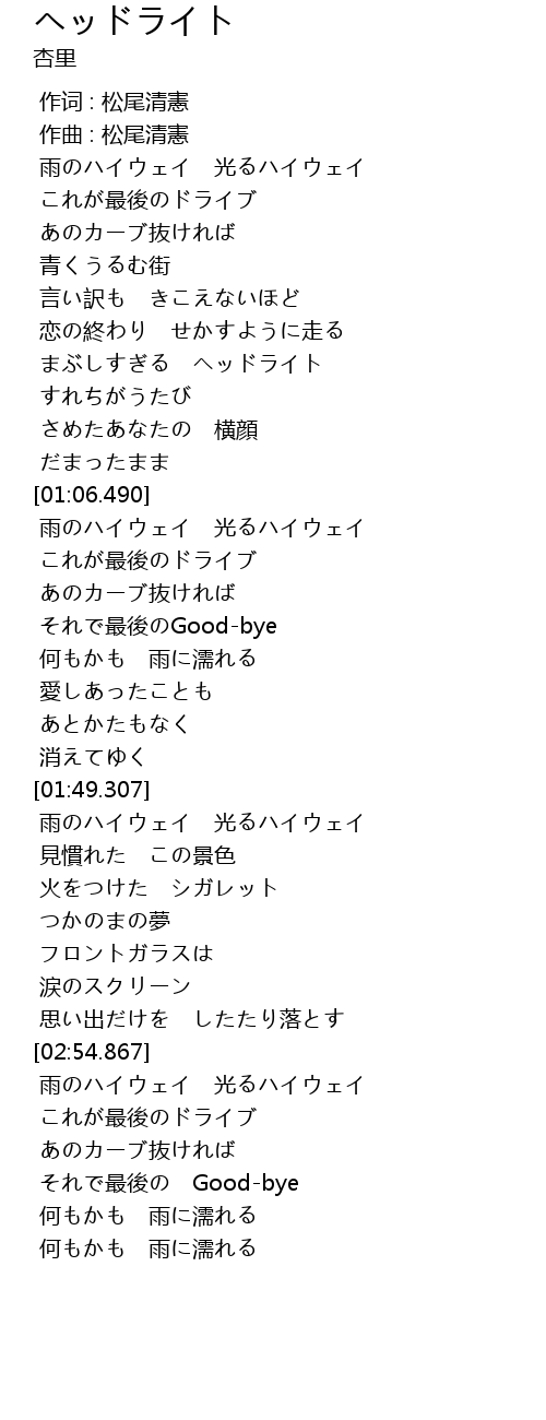 | [02:55.012] | 雨のハイウェイ 光るハイウェイ |