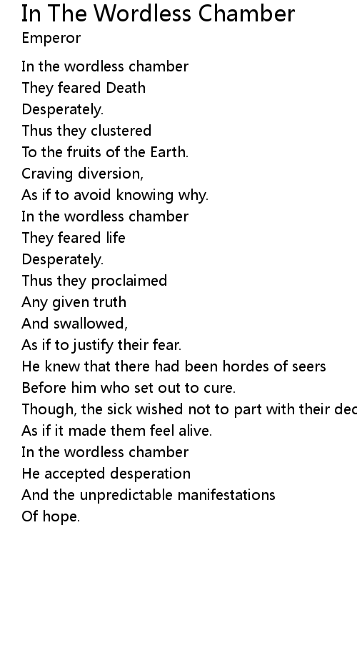 In the wordless chamber |