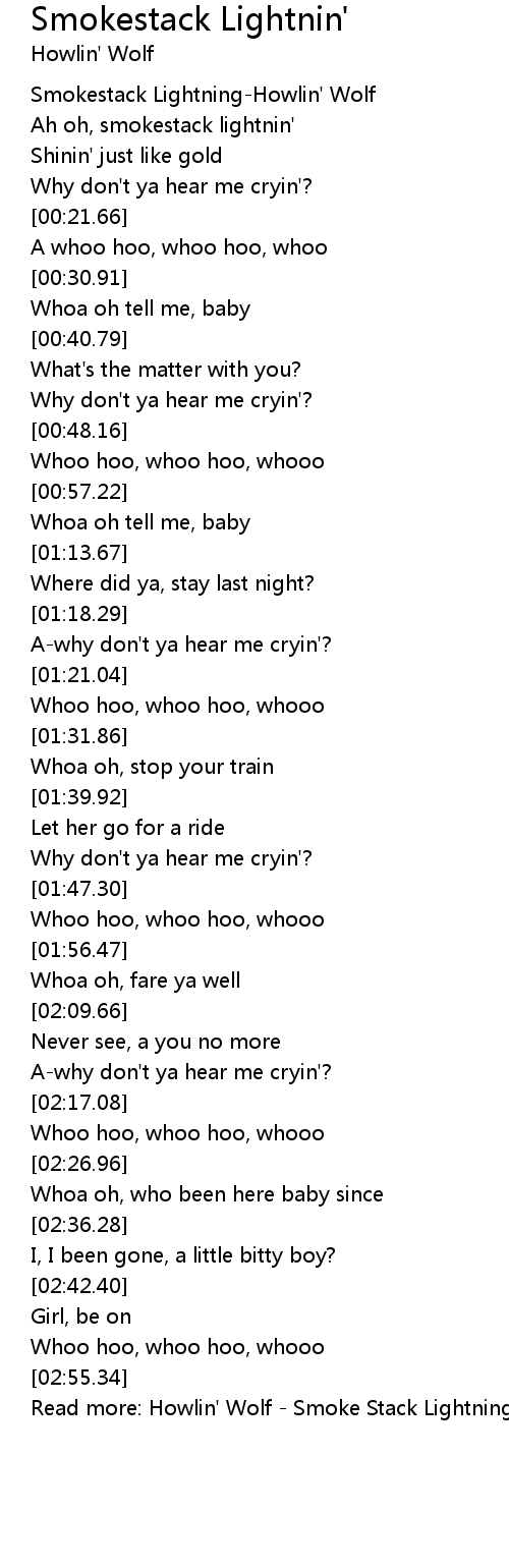 Read more: Howlin' Wolf - Smoke Stack Lightning Lyrics | MetroLyrics |