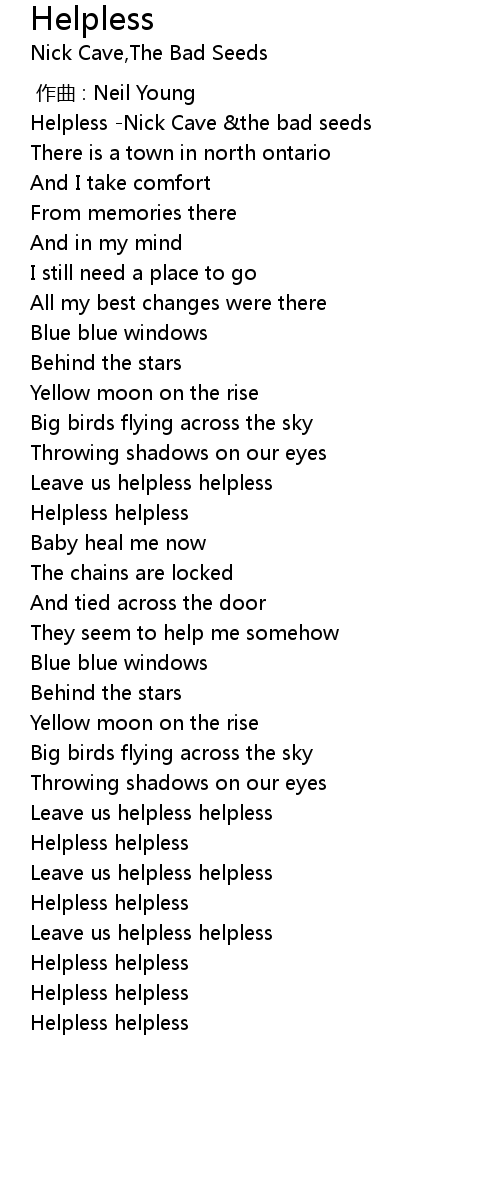 | [00:00.350] | Helpless -Nick Cave &the bad seeds |