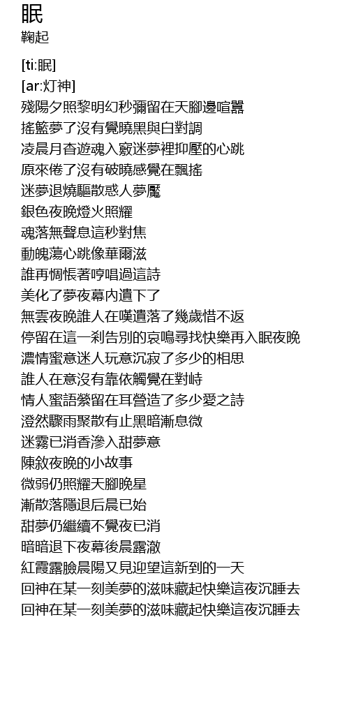 | [03:57.915] | 回神在某一刻美夢的滋味藏起快樂這夜沉睡去 |
