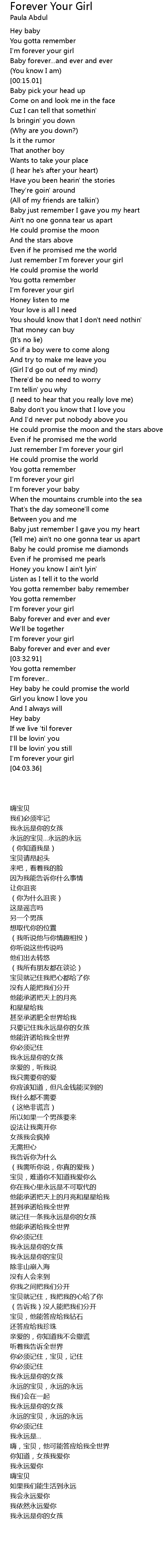 Just remember I'm forever your girl |