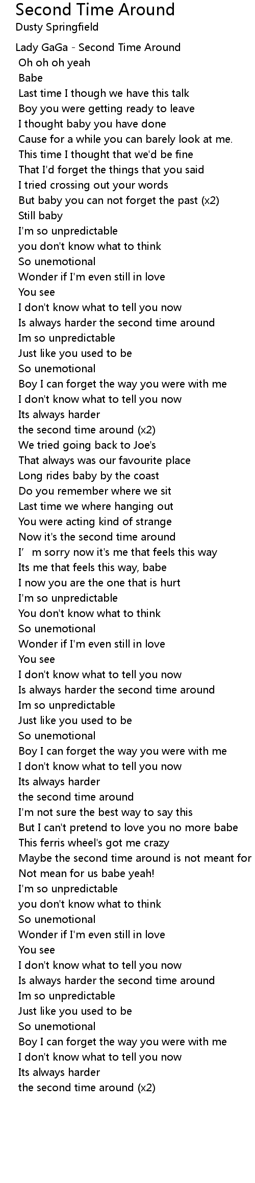 | Lady GaGa Second Time Around | |