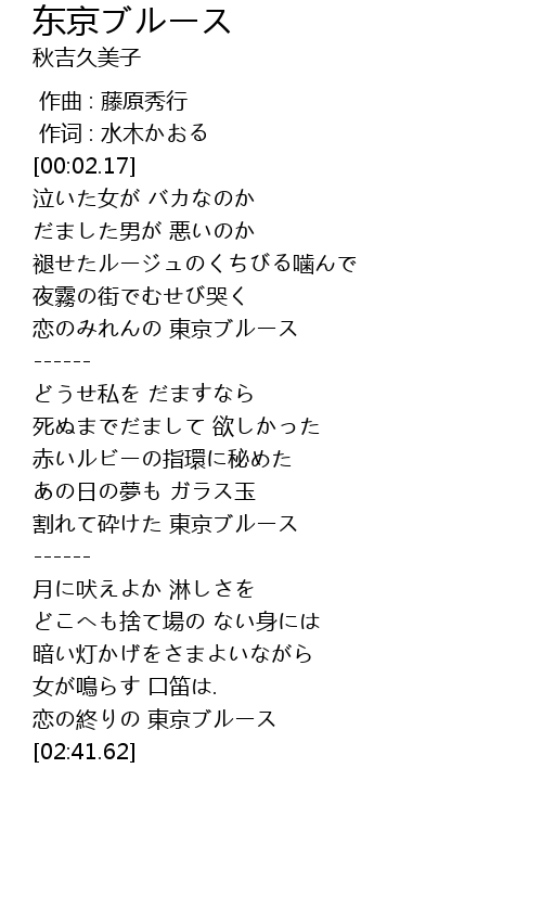 | [01:39.09] | 割れて砕けた 東京ブルース |