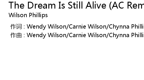 | [00:00.000] | zuo ci : Wendy Wilson Carnie Wilson Chynna Phillips Glen Ballard |