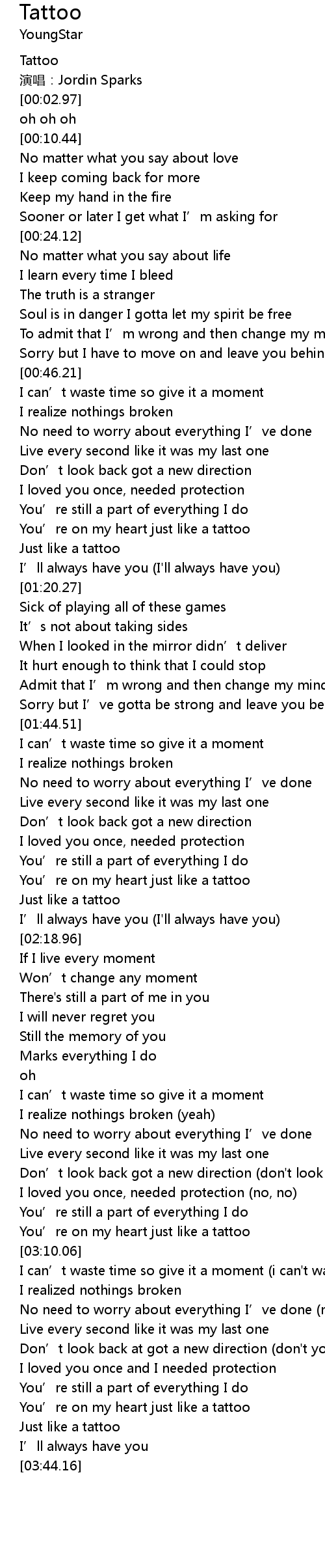 | [03:34.27] | Just like a tattoo |