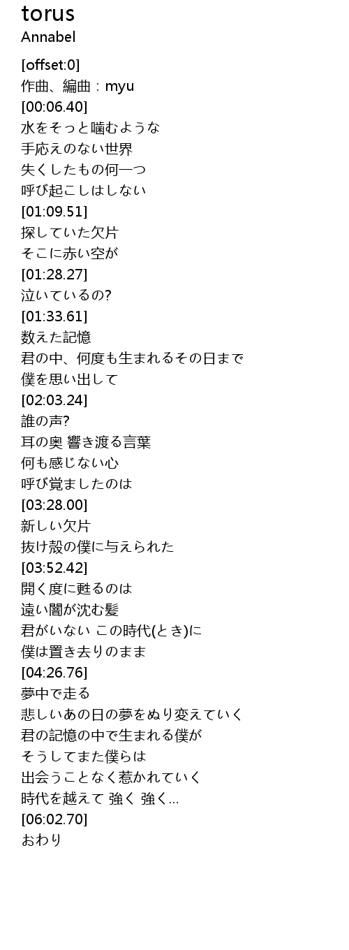 | [00:03.70] | 作曲、編曲:myu |