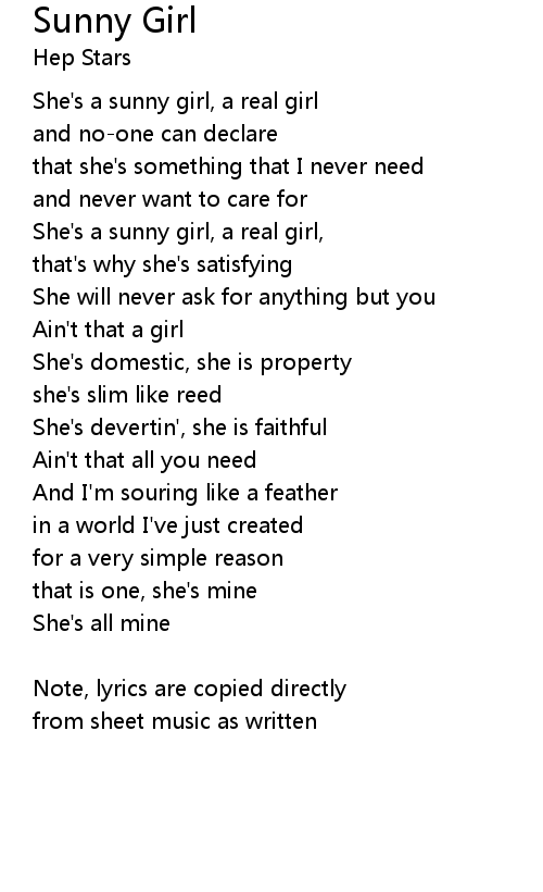She's a sunny girl, a real girl, |
