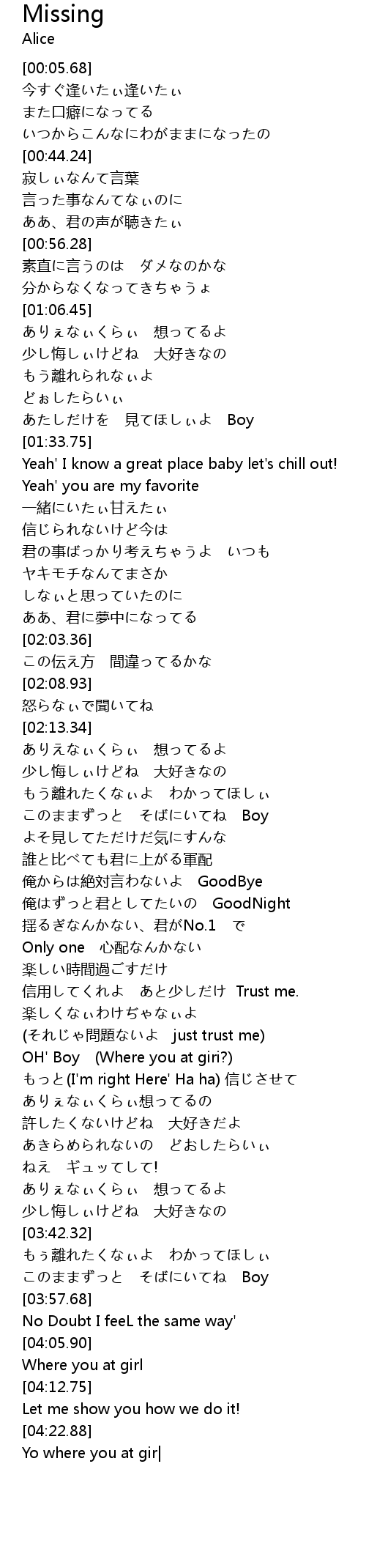 Missing Lyrics