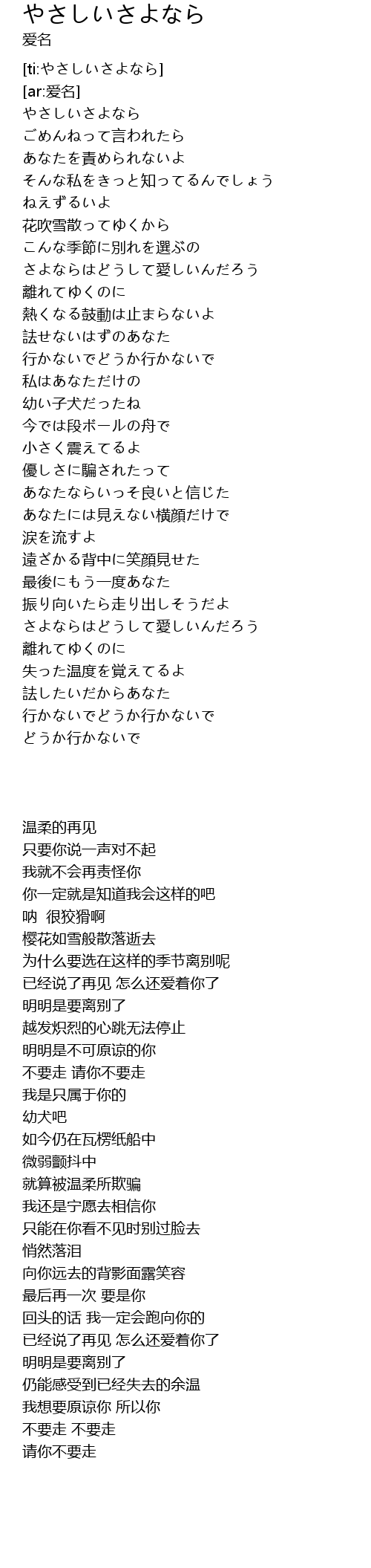| [03:19.113] | さよならはどうして愛しいんだろう |