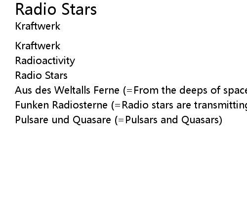 | Funken Radiosterne (=Radio stars are transmitting) | |