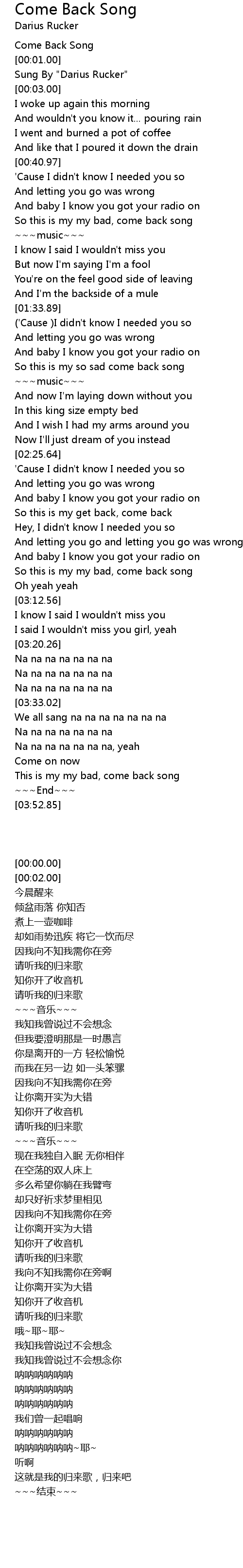 Come Back Song |
