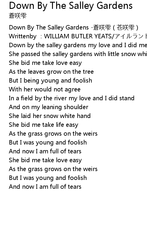 | [00:00.503] | Down By The Salley Gardens cāng xiào nǎ cāng xiào nǎ |