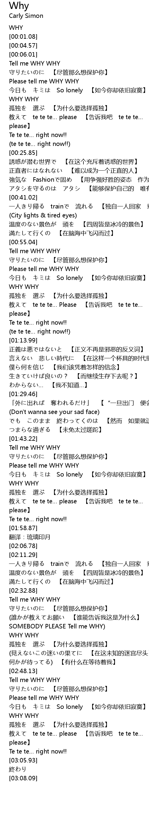 | [02:39.13] | SOMEBODY PLEASE Tell me WHY |